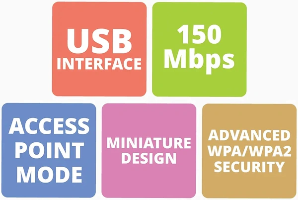 HB PLUS HB-USB150WF1 WiFi USB Mini Adapter Supports 150 Mbps Wireless Data, Comes with Advanced Security WPA/WPA2 encryption Standards