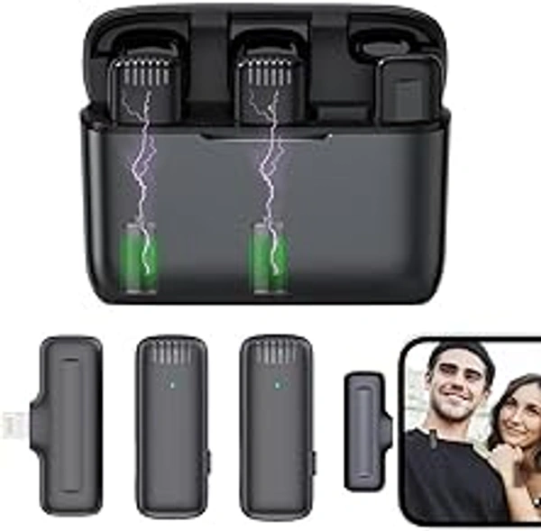 HB PLUS Plug & Play Lavalier Wireless Microphone 2.4GHz Wireless Microphone for Audio Surveillance Double Transmitters Single Receiver for Smartphone.