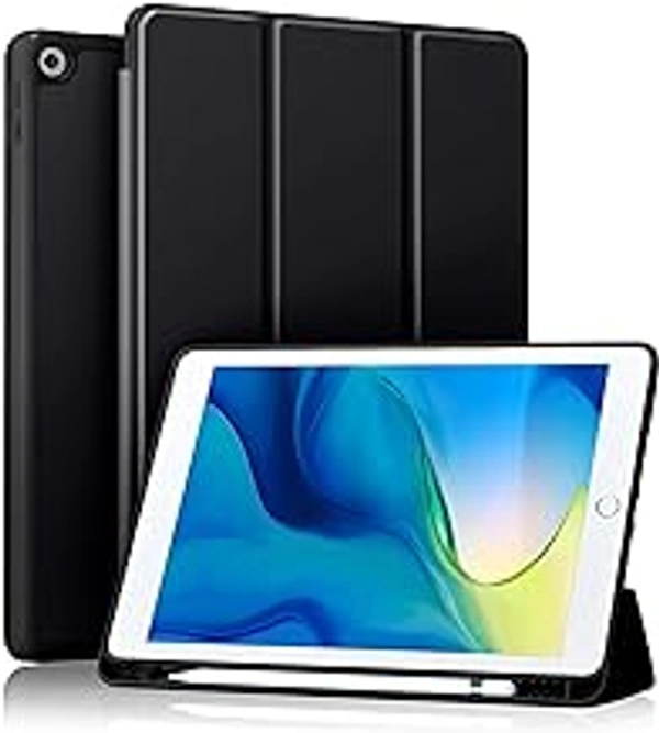 HB PLUS Protective Case Includes A Soft TPU Back Auto Sleep/Wake Cover and Pencil Holder Compatible with iPad 10.2 Inch (Black)