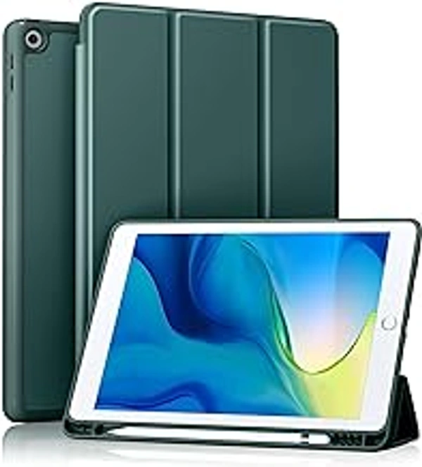 HB PLUS Protective Case Includes A Soft TPU Back Auto Sleep/Wake Cover and Pencil Holder Compatible with iPad 10.2 Inch (Pine Green)