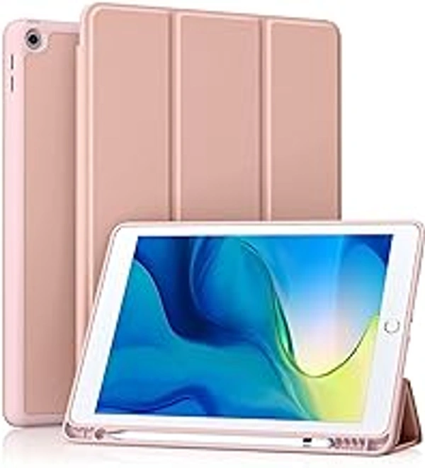 HB PLUS Protective Case Includes A Soft TPU Back Auto Sleep/Wake Cover and Pencil Holder Compatible with iPad 10.2 Inch (Rose Pink)