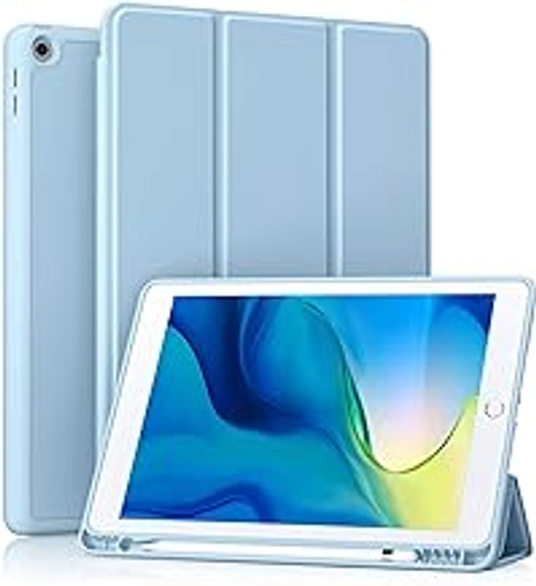 HB PLUS Protective Case Includes A Soft TPU Back Auto Sleep/Wake Cover and Pencil Holder Compatible with iPad 10.2 Inch (Sky Blue)