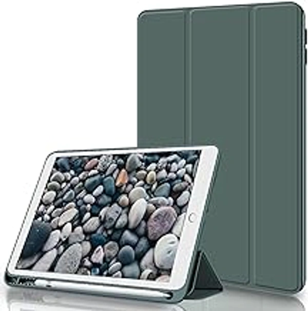 HB PLUS Slim Smart Protective Stand case with Pencil Holder for The iPad 5th and 6th Generation 9.7-inch Model A1822 A1823 A1893/A1954 with auto Wake and Sleep Capabilities. (Dark Green)
