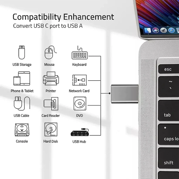 HB PLUS Type C USB 3.0 Male to 3.1 Converter OTG Adapter (Grey)