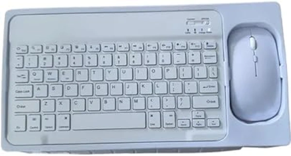 HB PLUS Wireless Keyboard Mouse Set - 10 Inch Ultra Slim Ergonomic Set for Seamless Connectivity with Tablets Mobile Phones and Laptop (White)