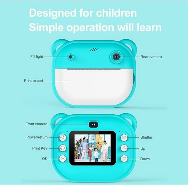 Instant Print Camera for Kids, 1080P HD Instant Print Photo, Birthday Gifts for Age 4 5 6 7 8 9 10 Girls Boys, Portable Toy with 1 Roll Photo Paper, HD Digital Video Cameras